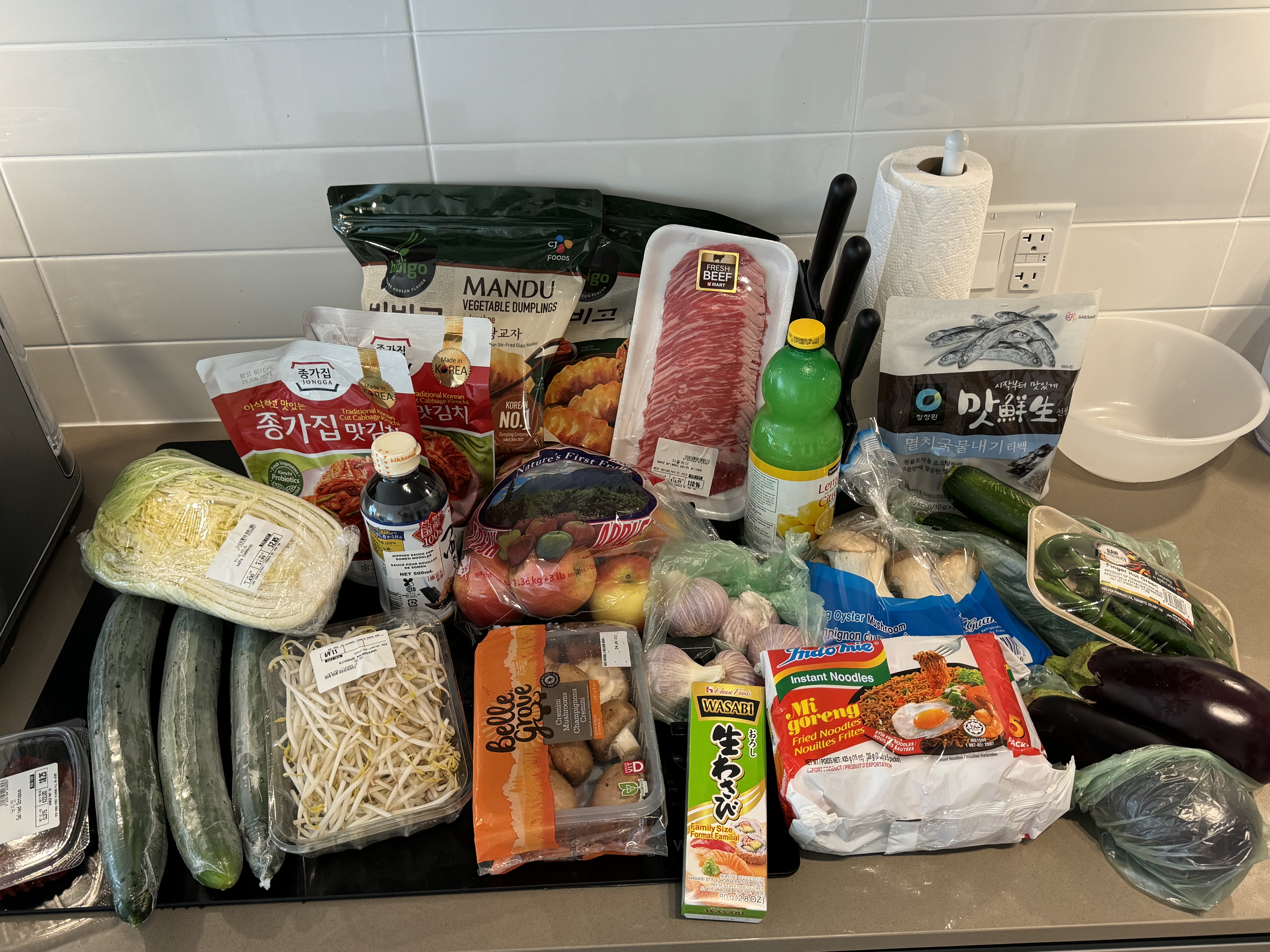 캐나다뿐만 아니라 전 세계가 장바구니 물가에 서민들의 불만이 나오고 있다. 나 역시 매년, 아니 분기마다 물가가 오르는 걸 느낀다. 하지만 작년에 잠깐 한국에 들어가 느낀 물가가 나에겐 더 충격적이라 오히려 '캐나다가 더 낫다'라고 동시에 느낀다. (한국 사과 1개에 오천 원씩 하는 것보고 까무러치게 놀람) 아래 사진에 나와있는 품목의 합계는 총 $123.86 (약 122,600원)로, Metro(현지마트)와 H mart(한국마트)에서 구입한 품목 개별가격을 아래에 나열하도록 하겠다.