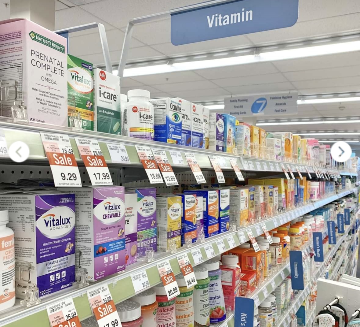 오히려 약은 한국보다 캐나다가 더 유명하다. 특히 샤퍼스에 가면 온갖 종류의 영양제와 약품들을 저렴한 가격에 찾을 수 있다. (샤퍼스 마트 내에 약사가 상주해 있어, 물어보고 처방을 받을 수 있음) 따라서 한달동안 사용할 비상약을 제외하고는 큰 부피차지하며 가져올 필요는 없다. (더 저렴하게 구매하고 싶다면 아마존 가격과 비교해보기)